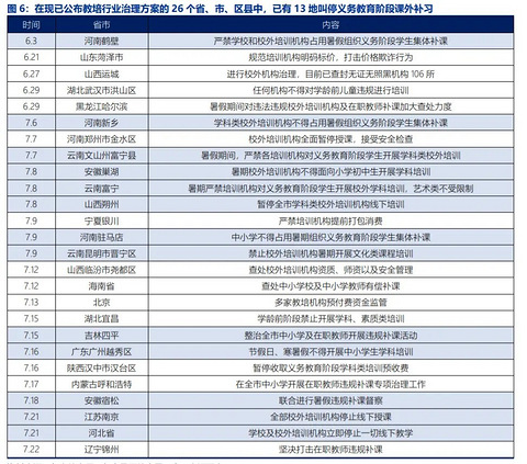 关于“双减”政策的执行情况,一起来看看都有哪些地区已经开始整治了? 据公开资料显示,已有13 地叫停暑假义务教育阶段的学科类补习,并开始进行行业整治, 对培训机构无证经营、校内教师校外兼职补习等行业乱象进行监管 。 从强度上看,河北,南京和河南最为严格。 欢迎大家补充。