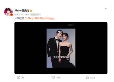 1月31日,有网友透露23岁的网红韩安冉马上要四婚了,引起了网友的关注。韩安冉和男友拍摄婚纱照,还在直播时透露会和男友结婚,目前正在备孕,有计划生一个兔宝宝。