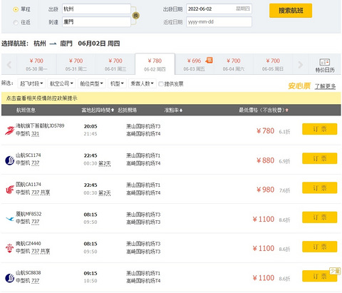 票价悄悄涨了? 因为燃油费上涨,机票价格每个月都在涨,是已知的情况了。那么票价本身呢?本周,一些同学留言,发现一直关注的部分机票价格悄悄上涨了! 我们查了一下,还真是,比如一些航程较短的,杭州厦门,原本300~400轻松拿下的,目前好的时刻都在1000以上!