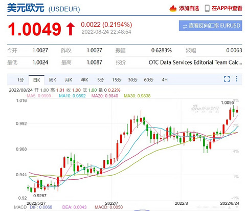 欧元美元终倒挂创20年新低!欧元“贵”过美元,这一大家的普遍认知正被颠覆。而且很可能只是开始。 一个多月前,欧元对美元汇率20年来首次跌破平价以下,引发市场关注。这几天,当时创下的最低历史纪录又被打破,倒挂已成现实!转自旅行雷达