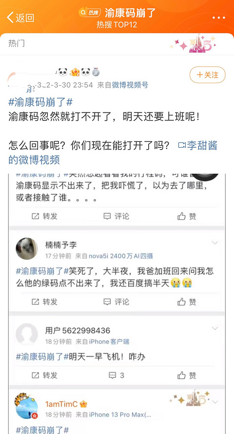 昨天晚上渝康码崩了,大家莫遭某些外地博主乱带节奏