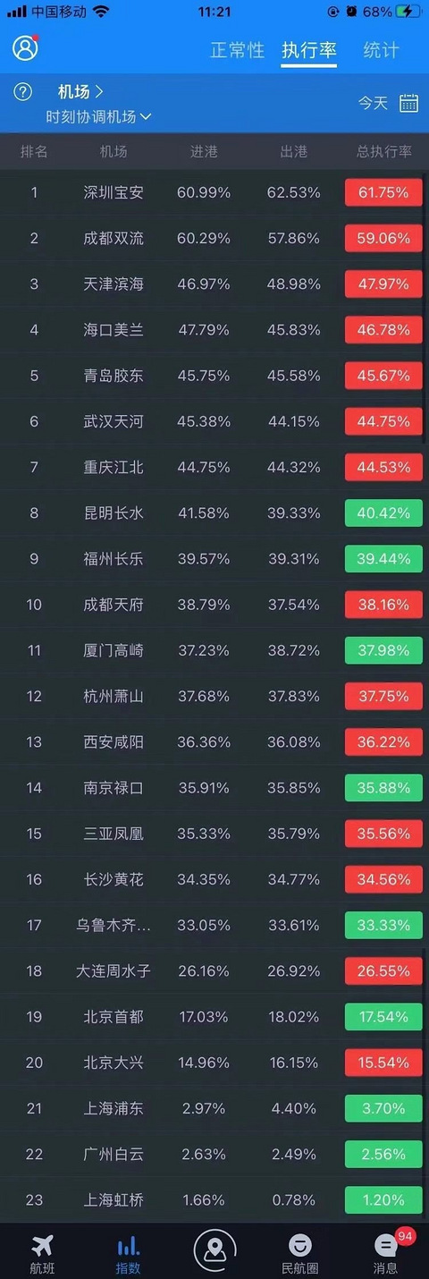 北上广五机场取消率全国前五 来自飞常准的统计,昨日,北、上、广五家机场取消率排全国前五。 上海虹桥取消率98.8%广州白云取消率97.4%上海浦东取消率96.3%北京大兴取消率84.5%北京首都取消率82.5%