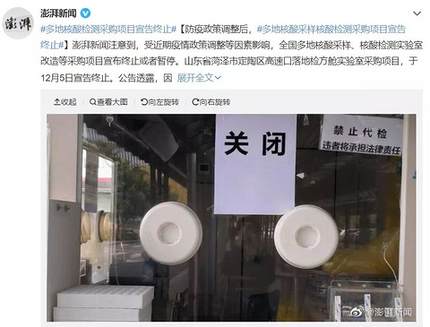 来自媒体的整理报道,防疫政策调整后,多地核酸相关项目宣告终止!转自,旅行雷达,新浪等