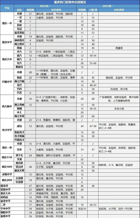 选学校一定要看班型,优先选个好班,师资和学习氛围是普通班不能比的,以下是重庆部分中学的班型,供参考。有遗漏的欢迎大家补充。