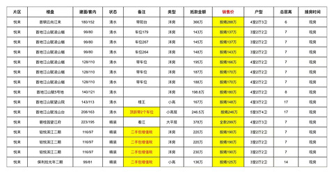 礼嘉,樾千山建面192,套内160户型:四房三卫5栋15楼,按揭一口价:246万——————建面232,套内160户型:五房三卫9栋10楼,全款一口价:269万——————备注:送两个车位产权车位,不讲价