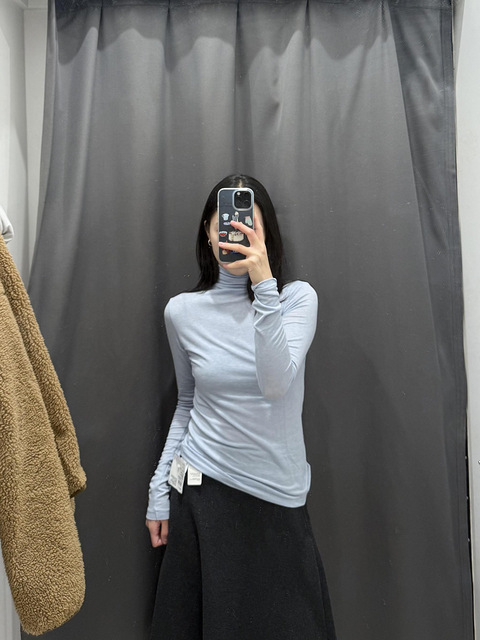 优衣库羊毛打底衫真的美死我了!蓝色也太好看好搭配了