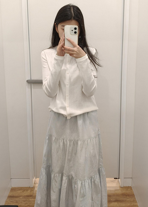 优衣库这一套太温柔了吧!白色针织衫搭配条纹裙子是春天的感觉