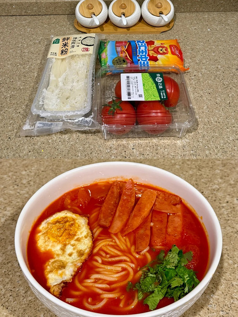 盒马番茄浓汤火腿肠米粉太好吃啦!汤汁浓郁,酸甜开胃