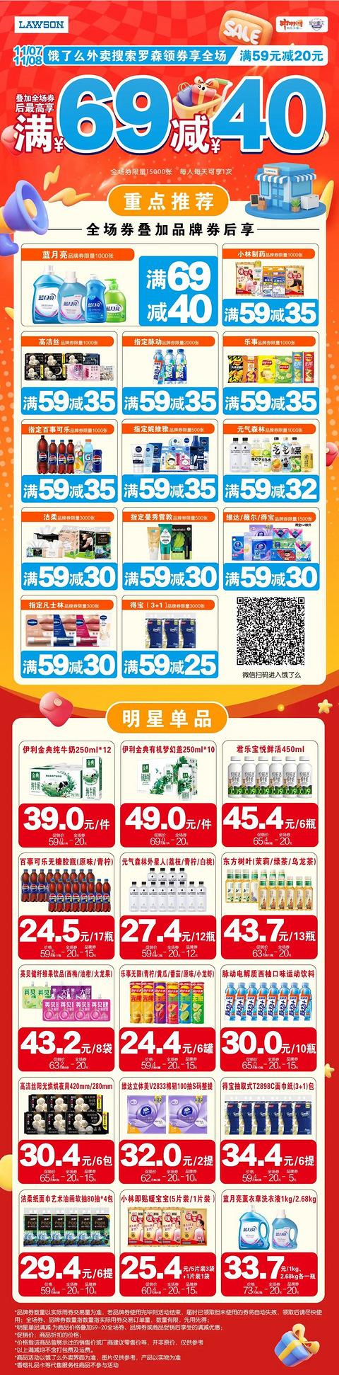 罗森饿了么外卖,领券叠加最高省40