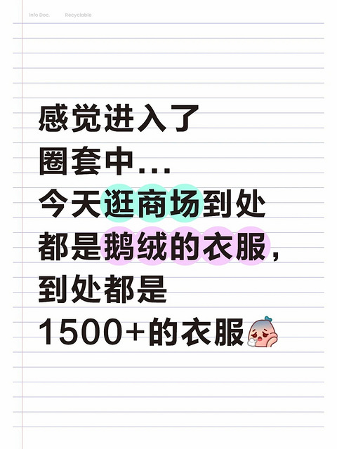 感觉进入了圈套中...今天逛商场到处都是鹅绒的衣服,到处都是1500+的衣服在加预算的边界来回踱步....应该不是今年才有的现象吧...买衣服太难了甚至去的还是奥特莱斯也是如此...
