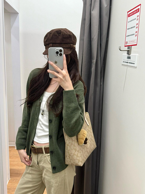 优衣库这个绿色开衫好显白!基础款的单品真的很百搭