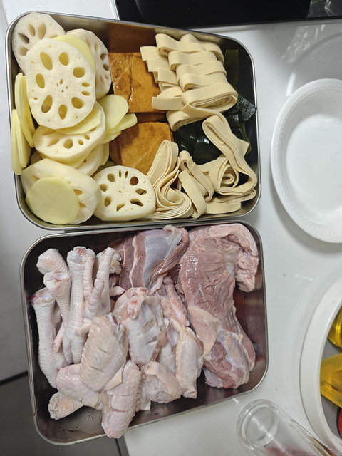 山姆周黑鸭卤料包味道不错!家里冰箱有很多冻货,不知道怎么办的,可以直接卤了,虽然处理食材比较麻烦,但是味道杠杠的。 1.食材全部处理干净。肉类解冻,冲洗,焯水,冲洗。2.素菜清水煮到断生。3.先放牛肉,牛肉要煮一个半小时,全程开盖小火,锅盖不能盖。牛肉煮了一个小时之后再放鸭舌等。4.肉菜煮完之后,把肉菜捞起来,把素菜放进去。 根据自己的口味情况看是要开小火煮一会儿或者是直接用卤水泡。