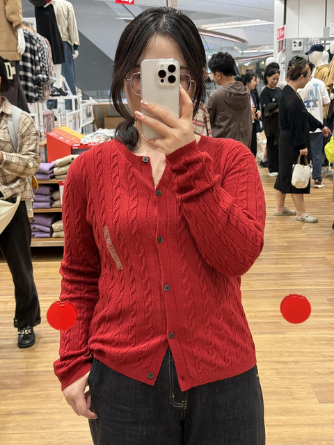 试了之前被种草的优衣库红色开衫!感觉穿上去窝窝囊囊的