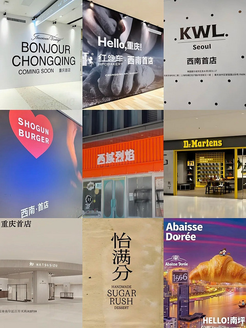 红跑车烘焙 重庆万象城American Vintage 重庆万象城怡满分糖水 重庆万象城Dr.martens 重庆大融城Shogun Burger 重庆星光68广场KWL 重庆PARK108国泰广场Abaiss Dorée 重庆南坪万达初HATSUSIZU 重庆江岸天街西域烈焰新疆汉堡 重庆大学城熙街