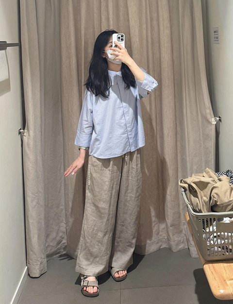 新上的muji立领七分袖衬衫好显瘦优点是材质很清凉也很轻快,很适合小个子,和棉麻宽版裤很适配,入了!缺点不是全棉,添加了40%聚酯纤维。248的价格,性价比一般。