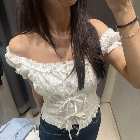UR这件上衣真的很美!一字肩或者拉上去都好看