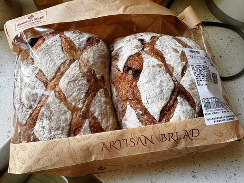 超级大的两个,分别4442g和432g,快一斤一个了。我是非常喜欢这种健康的谷物面包的,所以,我觉得很好吃,不甜,都是果干自带的甜味,一个女生,一个面包可以分五顿,早餐两片,抹上奶酪,配上糖心蛋,可以再配点牛油果,一杯黑咖的,非常健康又美味哦。