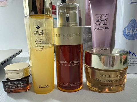 1.娇兰精粹水肤感细腻润滑 淡淡的香味 干皮上脸后超级舒服 2.娇韵诗双萃精华果然贵有贵的道理 双萃精华对于干皮来说就是yyds 上脸后大干皮感觉得到了救赎 3.雅诗兰黛智研面霜滋润版干皮一定要买滋润版 一点不粘腻 冬天很适合用这个 感觉还有提亮的效果 4.雅诗兰黛眼霜老网红了 偏滋润型的眼霜 去黑眼圈的效果一般 5.还有一个已经用完的倩碧镭射瓶302美白提亮就靠302 唯一的缺点就是封闭性太强