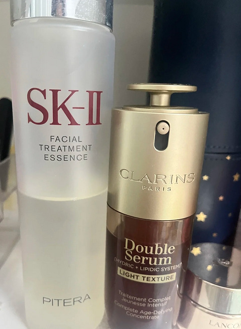 本人混油皮偏油,之前一直单独用神仙水,感觉已经很不错了,最近种草了娇韵诗的双萃精华,刚好上个月去免税店逛,于是买了一瓶双萃的清爽版,刚开始擦的时候觉得还很不习惯,因为感觉略油(本人巨不喜欢油油的感觉),不过想着买都买了,就用吧,没想到搭配神仙水之后,效果相当炸裂,皮肤可以说是十分光滑了,下巴上的千年老顽固闭口神奇的消失了,而且鼻头周围出油也少了,强烈推荐给姐妹们