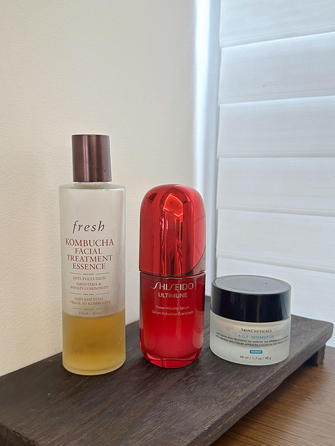 分享一组我一直自用且持续回购的精简护肤组合,尤其适合30+作息不规律暗沉垮脸的姐妹,用完皮肤状态又嫩又亮又紧致。 fresh红茶水早晚都可以用,清爽又水润,直接上脸或者用来湿敷都可以,还带有淡淡香味,闻着还挺舒服的,清爽微润的质地,上脸轻轻拍两下就吸收了,后面叠加精华面霜不搓泥,用完皮肤会微微光泽感。 资生堂全新红腰子抗老精华像我这种工作日熬夜加班连轴转的皮肤也像卡在待机状态,毫无生机,而它这次新