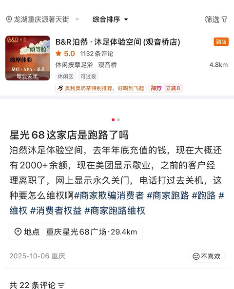 原本非常喜欢的一家店经常带家人朋友去放松还说元旦假期去一搜罗,妈哟垮了、跑路了!!!!!!小红书一看,还有很多“同路人”