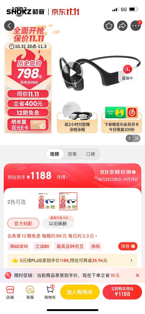 最近经常去健身房游泳,但是一直游始终觉得有点无趣,做了下游泳耳机的功课,感觉韶音这个牌子还可以,就趁着双11的活动入手了一个,实付788