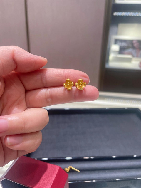 在网上种草了周大福山茶花黄金耳钉,这下终于拿下了!