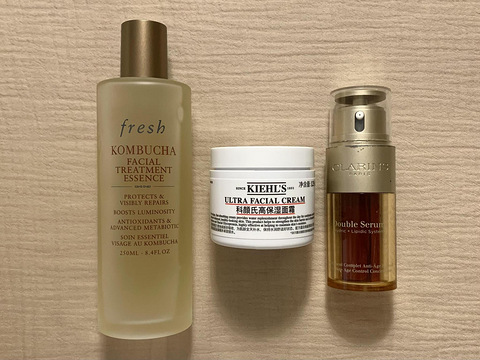 一入冬皮肤就干的不行,恨不得把最好的最贵的全涂脸上,结果水没补进去,反而脸折腾的更干了。。后来尝试精简护肤后,皮肤状态反而好了很多! 今年冬天我主要用这三样,每一步都精简方便: 洗完脸后轻拍两三遍fresh红茶水打底(或皮肤特别干燥的时候,可以搭配化妆棉湿敷5-10mins),上脸吸收也很快,几乎没有什么黏腻感!而且我很喜欢它那股淡淡的红茶香~闻着也很治愈~ 然后再挤两泵娇韵诗双萃精华!它是那种