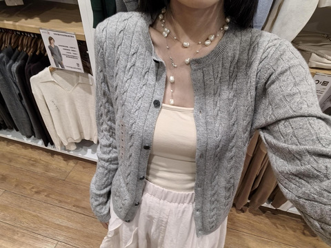 谁能抗拒这种刚在官网加购,路过实体店就发现降价的诱惑啊 超级软糯轻薄的开衫,纹理感很好,是可以贴身穿的那种材质