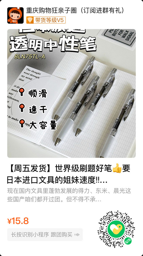 15.8,抢4 支专业级透明杆中性笔,这笔超好写