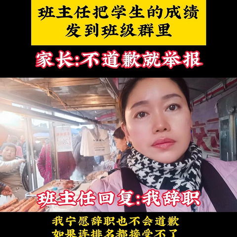班主任把学生的成绩发到班级群里,家长:不道歉就举报。班主任回复:我辞职,我宁愿辞职也不会道歉。如果连排名都接受不了,又怎么能在未来竞争激烈的社会中生存?重庆的家长:你怎么看?