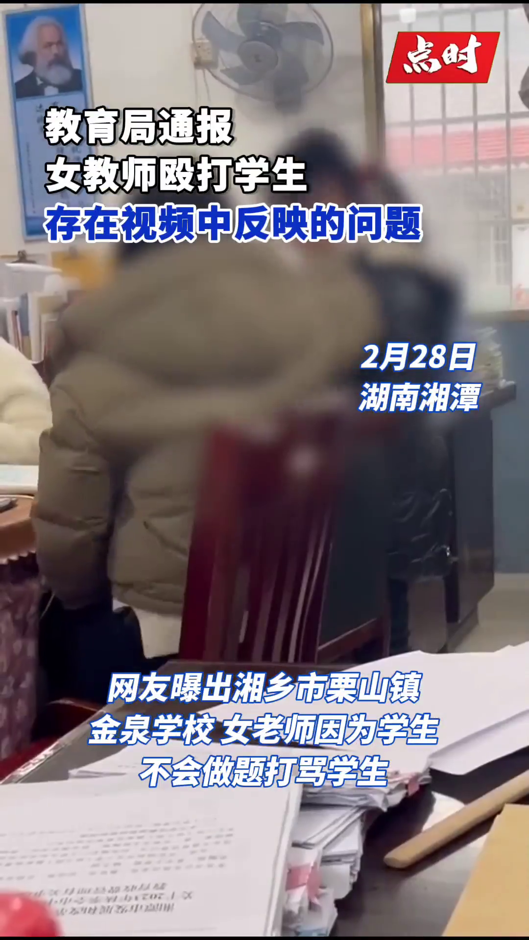 【#教育局通报女教师殴打学生# 存在视频中反映的问题】#如果你的孩子被体罚了你怎么办# 2024年2月28日下午,网传“湘乡市某学校一教师辅导作业时粗暴对待学生”的视频信息,对此,我局高度重视,第一时间联合相关部门成立调查组进行调查处理。 经初步核实,确实存在视频中所反映的问题。目前,我局已暂停涉事教师工作并责令其接受调查,同时安排专业人员对学生进行心理辅导。后续我局将对涉事教师按照相关规定严肃