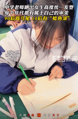 中学女生们的统一发型,这几天在互联网上有了新名字,“10后有自己的‘鲶鱼须’”。起因是有中学老师晒出班里学生的视频,镜头下大家都穿着宽大的校服趴在桌上做习题。但女生们几乎无一例外地从额头正上方垂下两绺头发,挡住半张脸。