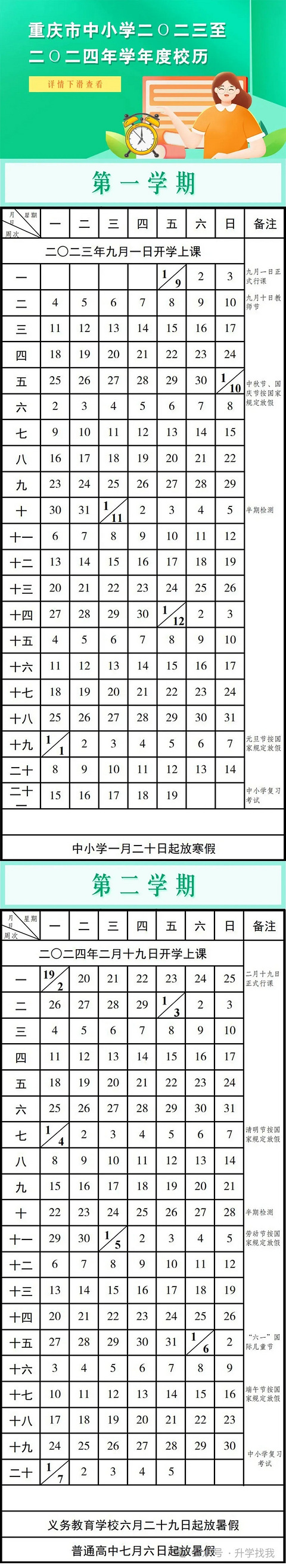 元旦过后,属于小朋友们的寒假也将到来了,许多家长已经开始规划起了寒假生活。那么目前首先要攻克的就是期末考啦!还有些家长不知道什么时候期末考?整理了最新的重庆中小学期末考时间,一起来看看吧。 2024年重庆中小学寒假放假安排 按照校历安排,第一学期共21周,第21周是考试周,寒假从2024年1月20日开始,2月19日结束,共30天。