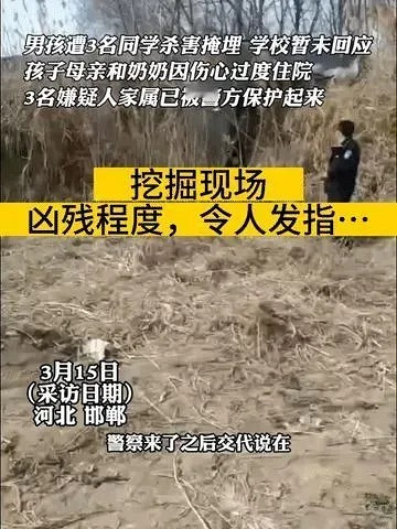 邯郸初中生被杀一案,央媒怒批:监护人和学校是失责的,必须追究相应责任!令人遗憾的是,据知情人透露,三名凶手的家属已被转移,似乎是保护了起来。而校长也躲了起来,手机已关机。因此,我个人认为,作为该校的校长,肯定负有不可推卸的责任。出事儿后不积极应对,反而躲了起来。更重要的是,家长寻找孩子时,去学校询问校长以及老师,还称“在学校里没出现过被欺负的事儿。”现在出了这么大的事,并且以证明被害的初中生长期被
