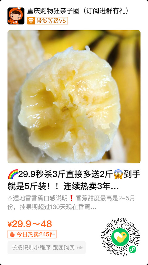 遁地雷香蕉!3斤+送2斤,实发5斤,秒杀29.9元,16号中午13点结团