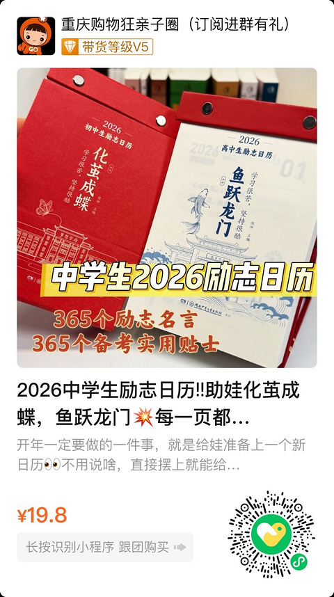 2026中学生励志日历助娃化茧成蝶,鱼跃龙门 每一页都是精神燃料更是孩子学习的秘密武器 既然都要给娃准备新日历,不如给他们换上这个【励志版日历】 不是普通的日历,而是娃桌上的督促者和陪伴者! 在备考的紧张日子里,给予方向与鼓励,每一步都能走得更坚定