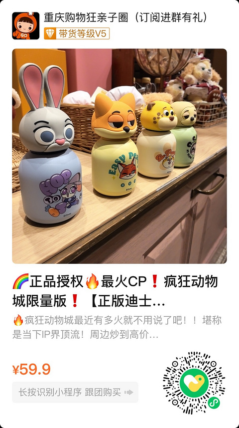 疯狂动物城保温杯,正版授权,只要59.9元