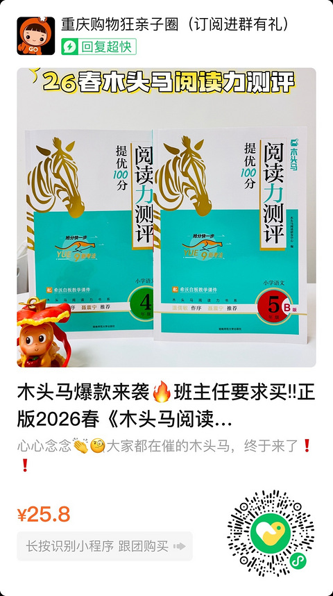 木头马爆款来袭班主任要求买正版2026春《木头马阅读力测评》下册来了 全网39.8起,这次25.8直接破价 温儒敏推荐名校指定教辅同步课堂练习,一站式 新品首发破价炸,抓紧拍