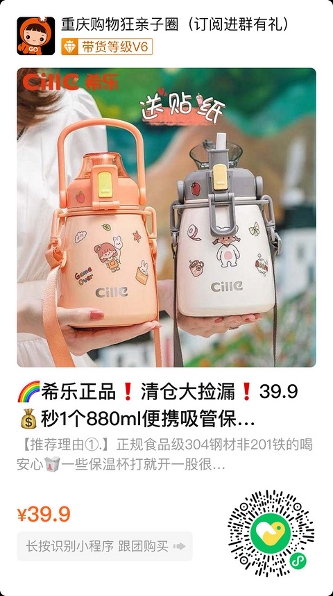 清仓大捡漏!39.9秒希乐吸管保温杯,304不锈钢内胆,多色可选