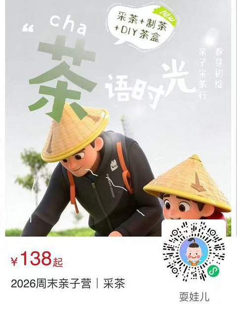 周日下午,一场趣味满满的亲子茶文化活动等你们参与~在茶园课堂学茶礼,亲手采茶、处理鲜叶、制茶,感受非遗魅力,还能DIY创意茶盒仅168元(一大一小/两大一小),名额有限,快来加入吧~