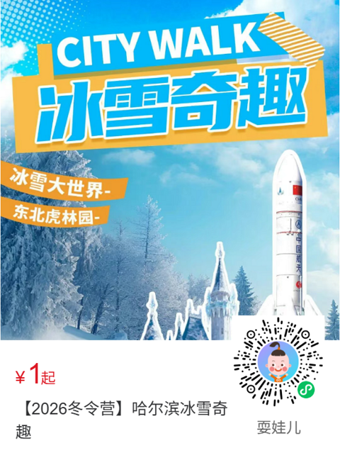 早鸟特惠别错过!哈尔滨6天5晚冰雪奇趣独立营来啦,专为娃儿设计!娃独自踏上旅程,漫步梦幻林海雪原,感受大自然的纯净壮美;走进哈工大,探秘航天硬实力,点燃科技梦想;还能畅玩冰雪大世界,欣赏璀璨冰雕。快让孩子开启这场奇妙冰雪之旅!