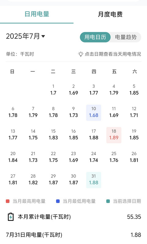 爸妈去避暑还没回来,冰箱没有扯点,看了下国家电网app,对电费有点概念了,原来一个冰箱一个月用这么多度电