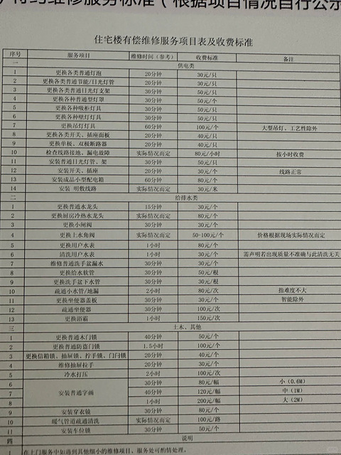 你们物业换灯光修水管要钱不?才发现我们小区是按时间收费