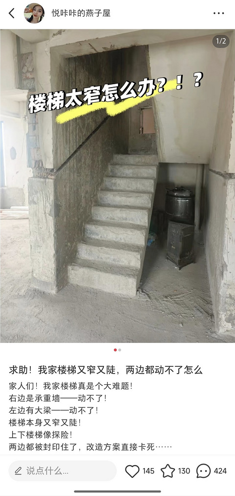 从开始装修,我家最大的难题就是楼梯,不到80cm的长度,标准的开发商楼梯,又高又陡又窄每步高度又不一致,集齐了所有难点!且右边是承重墙,左边有大梁,从“无从下手”到“完美落地”,多亏了网友们的意见!