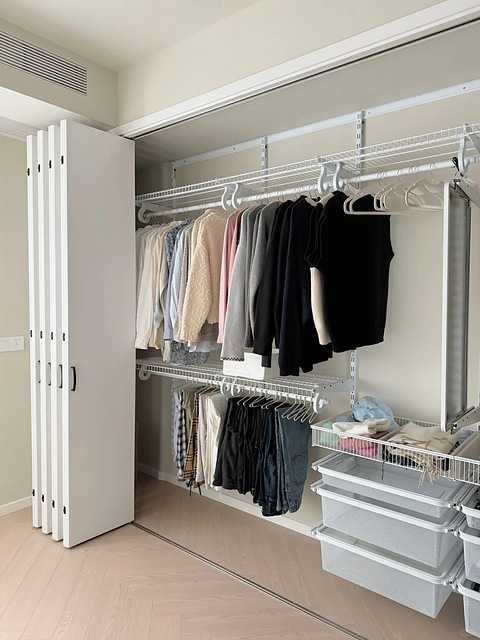 算下来跟定制柜价格差不多了!本想着3个房间+衣帽间都做金属衣柜,就去问了下做这个的商家,我以为几根铝合金管子能贵到哪里去,谁知道一算钱跟定制衣柜差不多了,甚至还要贵些。 而且贵就算了,还很麻烦,费时费力,尤其是柜门那块,又贵又难整,很复杂,哎 ....... 算了,老打老实做定制去了