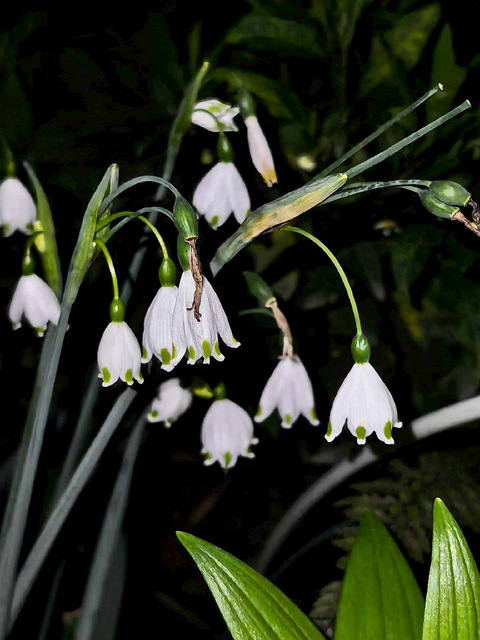 雪片莲,铃兰平替 雪片莲一串串洁白的小铃铛挂在纤细的花茎上,仔细看看,每个小铃铛有6个花被片,每枚花被片的尖端都有一个绿色的斑点,就像小仙女身穿着素雅的镶边舞裙,微风拂过,小仙女娇滴滴地翩翩起舞,非常可爱。