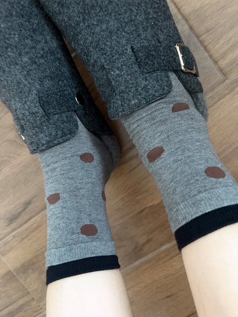 好喜欢这双灰咖撞色波点袜子,真的好韩女,太好看辣