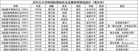 历年五大学科国际奥林匹克竞赛获奖情况统计(重庆市)