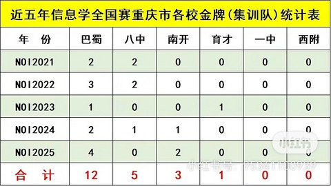 (转)近五年信息学全国赛重庆市各校金牌(集训队)统计